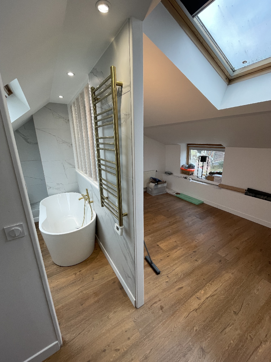Nous réalisons des nouvelles salles de bain sur mesure et rénovons vos espaces pour plus de confort et de modernité. Nos prestations incluent la création et la rénovation complète de votre salle de bain avec l’installation de douche à l’italienne, de baignoire, de WC et de lavabo. Nous nous chargeons également de la mise en place de robinetterie, d’installations sanitaires et de meubles de salle de bain adaptés à votre espace.